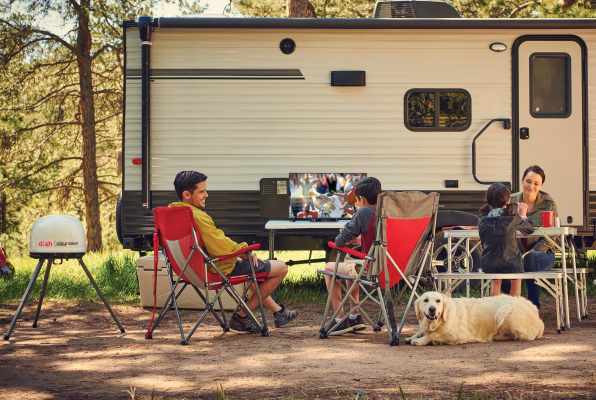 DISH Outdoors is TV that travels with you. It’s built for RVs with options for multiple TVs and in-motion viewing. Our antennas are portable and easy to set up, with no Wi-Fi required! Plus, only pay for the months you use – no activation, disconnect or setup fees.